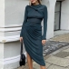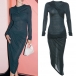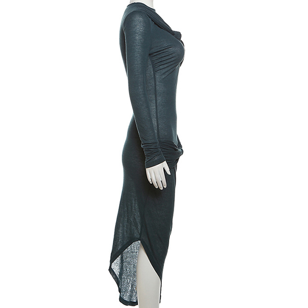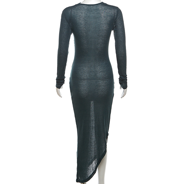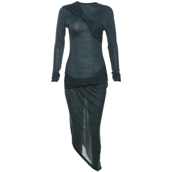 Fashion Knot Round Neck Long Sleeve Irregular Hemline Bodycon Dress