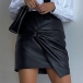 Fashion Knot Ruched Irregular Hemline Artificial Leather PU Skirts