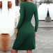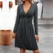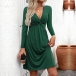 Fashion Knotted Ruched V-neck Long Sleeve Mini Dress