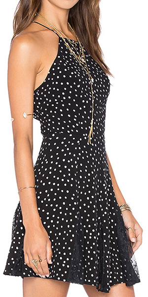 Swing into the party mood with this flare dress. It features crisscross back, lace paneled