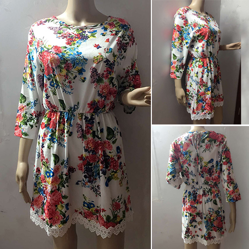You would be more beautiful with this dress. Outfitted with pretty printed, round neck, 3/4 sleeve, lace and gathered waist