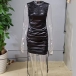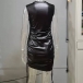 Fashion Lace Splcied Side Drawstring Artificial Leather PU Bodycon Dress
