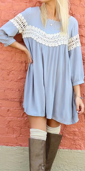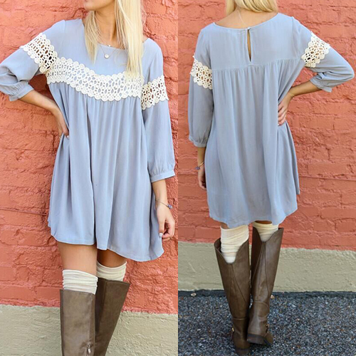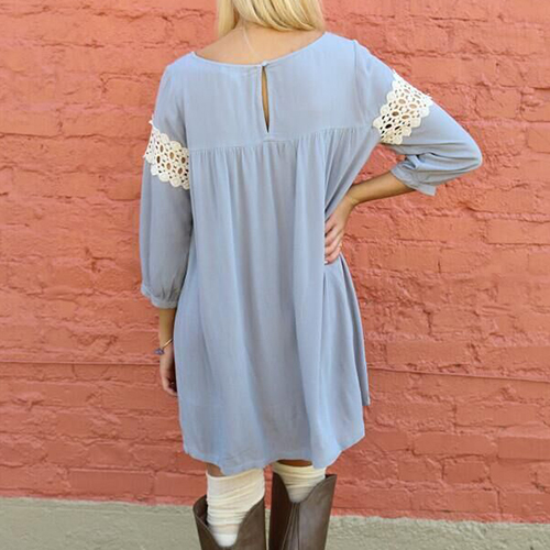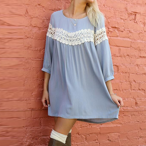 Lace spliced style,outfitted with 3/4 sleeve and a round neckline,simple and stylish. It's the perfect