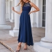Fashion Lace Spliced Backless Halter Dress