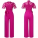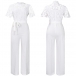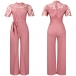Fashion Lace Spliced Bodice Short Sleeve Wide-leg Self-tie Jumpsuit
