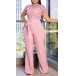 This jumpsuit features a delicate lace panel in bodice that adds a touch of feminine allure, while the short sleeves and wide-leg silhouette create a modern, sophisticated aesthetic. Its flattering silhouette and versatile styling make it a must-have piece that you'll reach for time and time again.