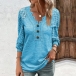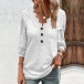 This shirt features a V-neckline with buttoned details, lace spliced long sleeve offering a classic and versatile design.  You can pair it with jeans or trousers for a chic and effortless everyday outfit.