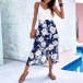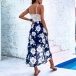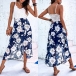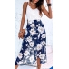 Fashion Lace Spliced Chiffon Floral Printed Slit Slip Dress