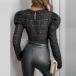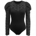 Fashion Lace Spliced Crew Neck Long Sleeve Bodysuit