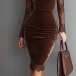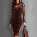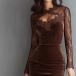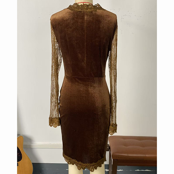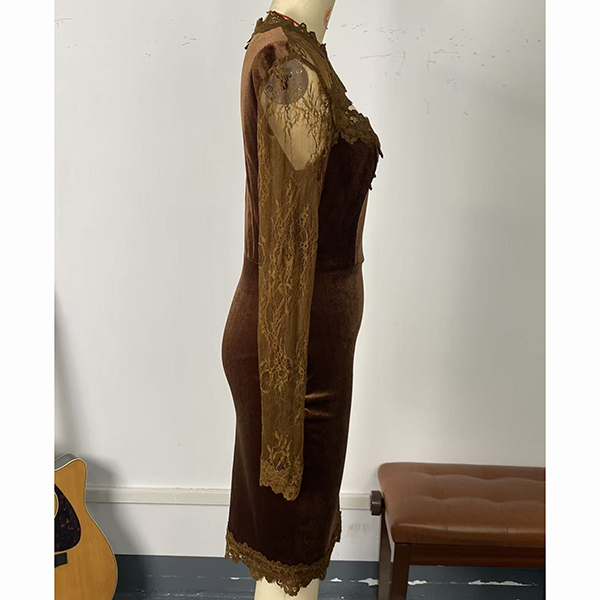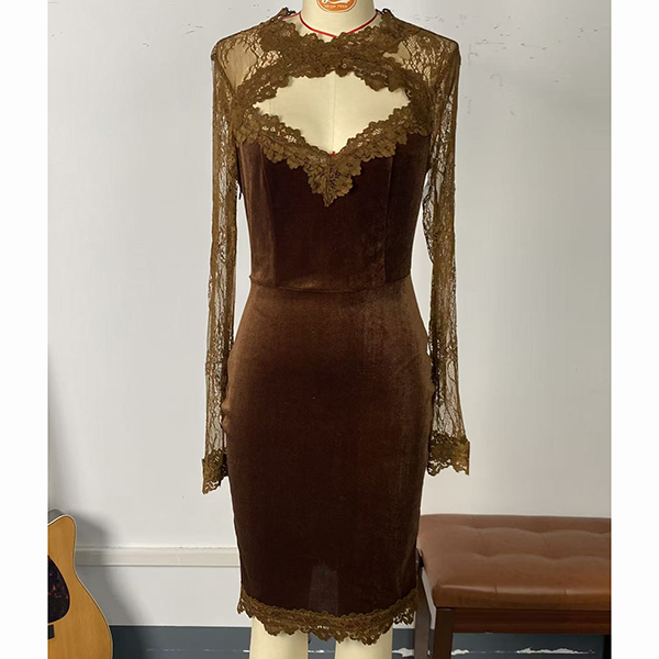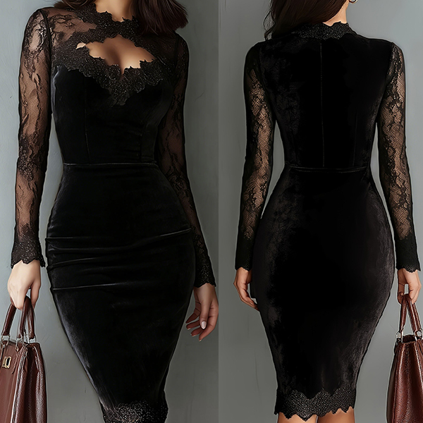 Fashion Lace Spliced Crew Neck Long Sleeve Front Cutout Bodycon Dress