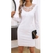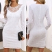 Fashion Lace Spliced Crew Neck Long Sleeve Hollow Out Bodycon Dress
