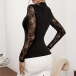 Fashion Lace Spliced Crew Neck Long Sleeve Shirt