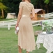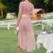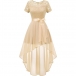 This trendy dress features lace spliced chiffon design, crew neckline, short sleeves, and a high-low hemline, creating a chic and fashion-forward look. Hope you like it.
