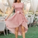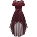 Fashion Lace Spliced Crew Neck Short Sleeve High-low Hemline Dress