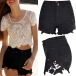 Add a touch of femininity and style to your summer wardrobe with these fashion-forward denim shorts~The lace detailing adds a delicate and trendy element to the classic denim shorts, creating a unique and eye-catching look. These shorts are perfect for creating a chic and casual outfit for warm weather days.