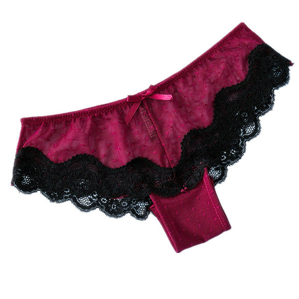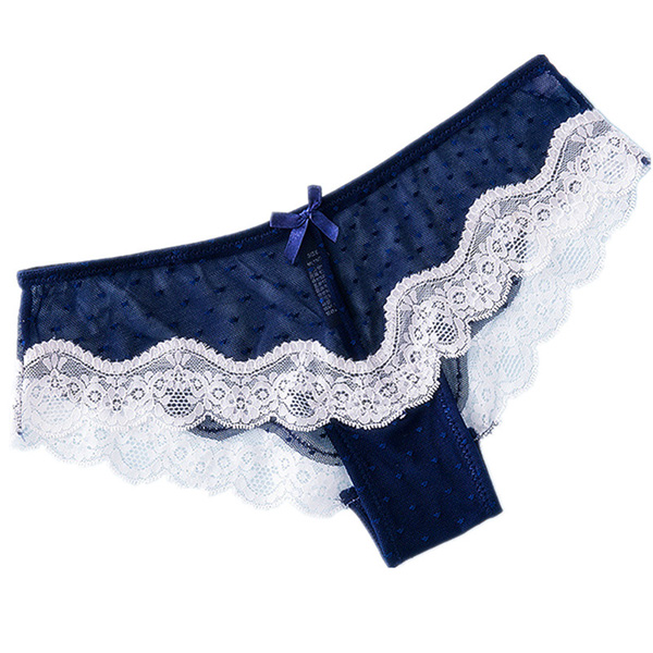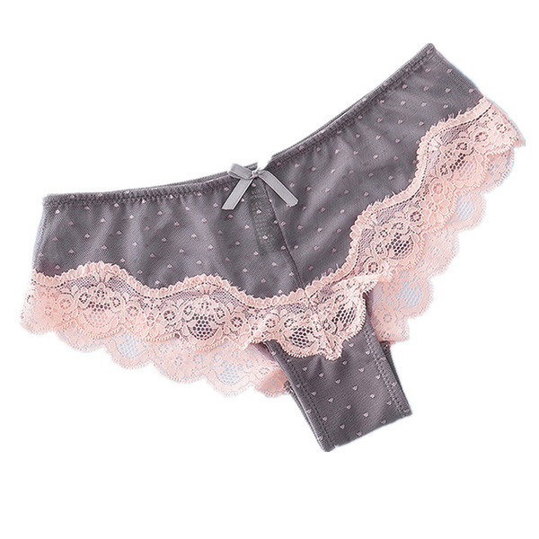 Fashion Lace Spliced Dot Printed Low-rise Brief-2 Piece/Set