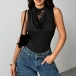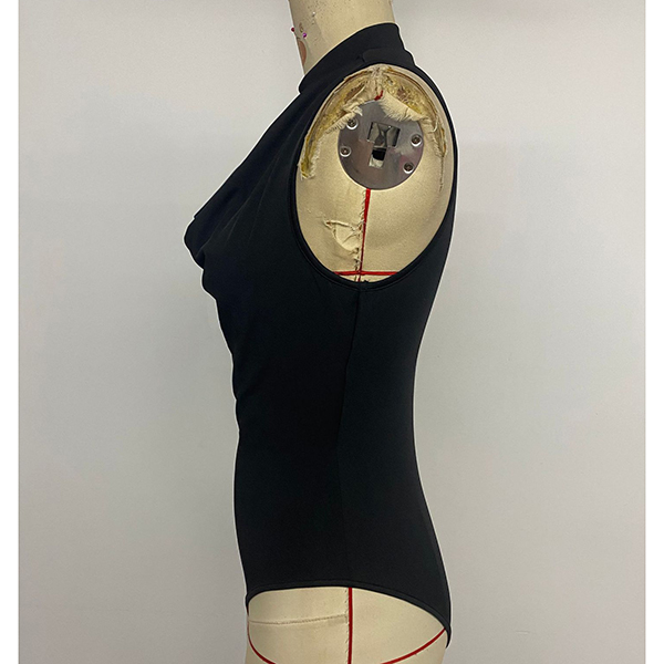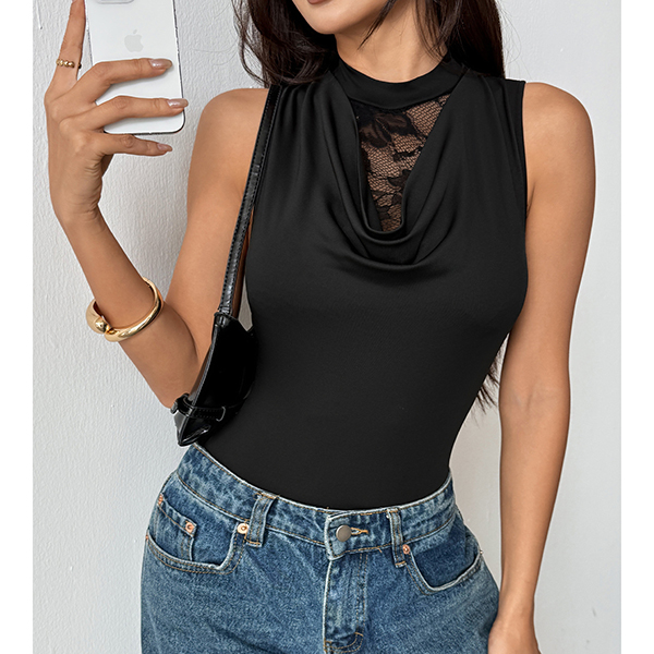 Fashion Lace Spliced Draped Neck Sleeveless Bodysuit