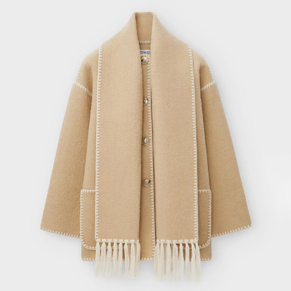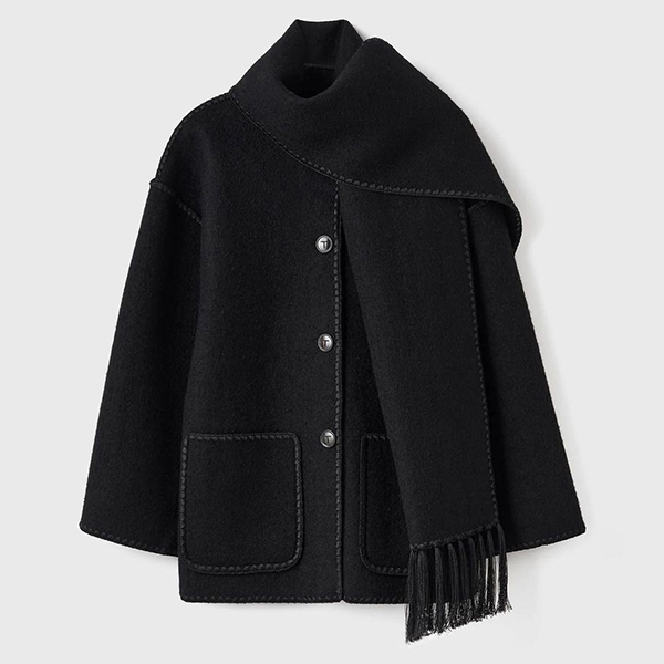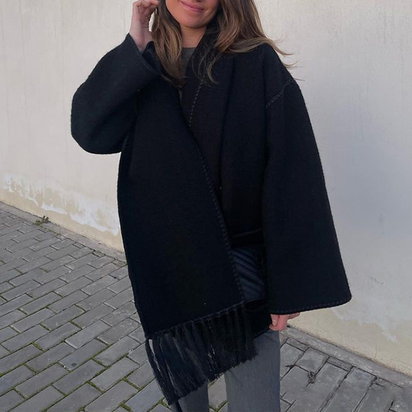 The duffle style of the jacket adds a trendy and fashion-forward element. To add an extra touch of sophistication and style, this jacket comes with a tassel scarf. Pair it with jeans and ankle boots for a casual yet stylish outfit.