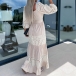 Look at this dress! The lace-spliced detailing adds a delicate and romantic element to the dress, creating an intricate and visually appealing contrast. Wanna have a try?