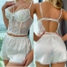 Fashion Lace Spliced Floral Embroidery Two-piece Nightwear Set