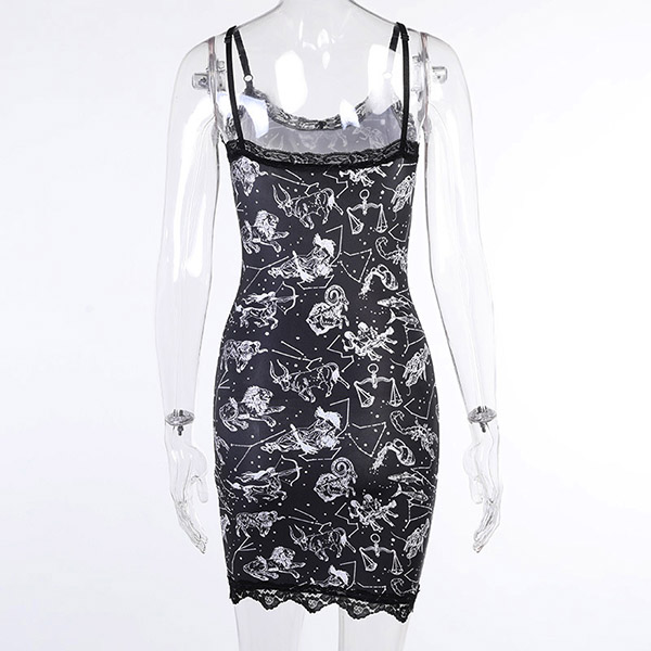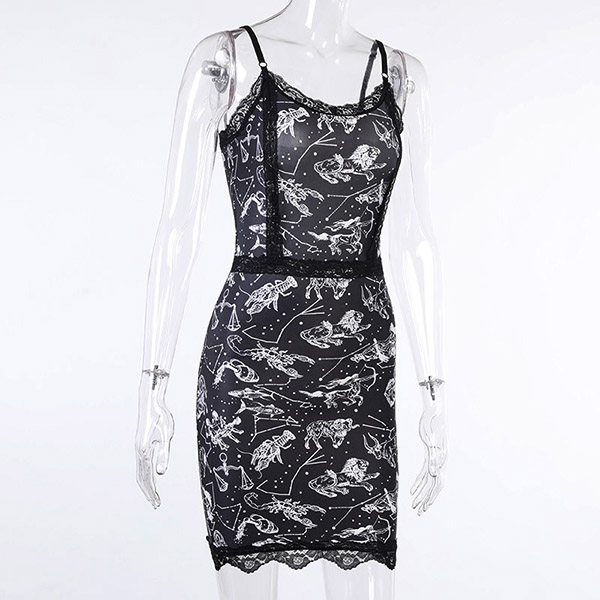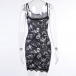 Fashion Lace Spliced Floral Printed Bodycon Slip Dress