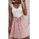 Fashion Lace Spliced Floral Printed Self-tie Fit & Flared Dress