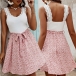 This beautiful dress is perfect for any special occasion! The bodice is adorned with delicate lace spliced neckline and shoulder strap, floral printed skirt with a self-tie waistband, It's simply perfect!