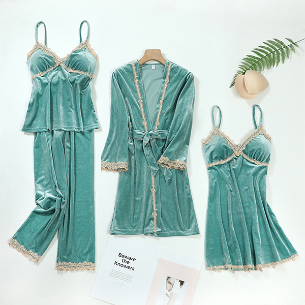 Fashion Lace Spliced Four-piece Velvet Pajamas Set