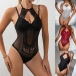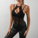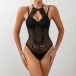 Fashion Lace Spliced Gauze Halterneck Backless Front Cutout Bodysuit
