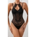 This is a stunning and alluring piece that combines delicate lace with a daring design. The backless design and front cutout create a daring and sensual silhouette, perfect for making a statement at any event or occasion. Pair this bodysuit with high-waisted pants or a skirt for a stylish and fashionable look.