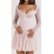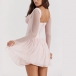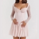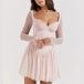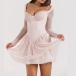 Fashion Lace Spliced Gauze Long Sleeve Corset-style Mini Dress