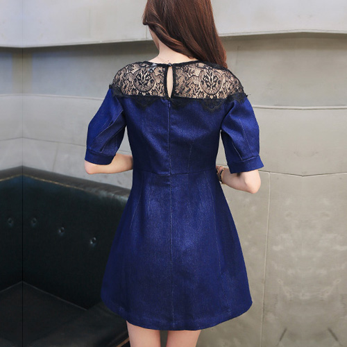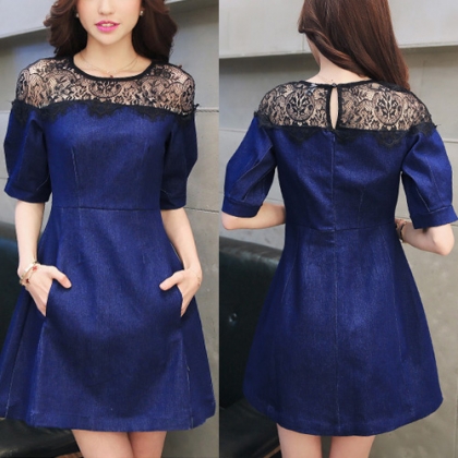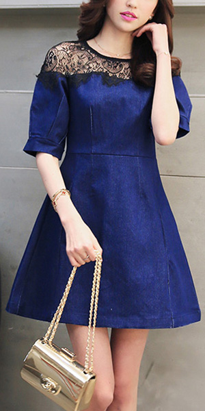 When lace encounters denim,what kind of spark will impact? If you want to know,you can try this denim dress.