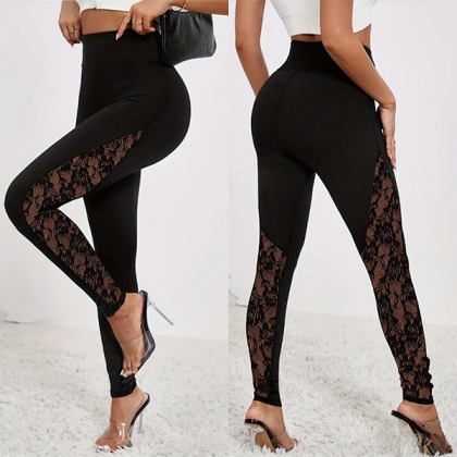 This is a trendy and stylish leggings that combines comfort with a touch of feminine flair. The lace spliced detailing adds a chic and elegant element to the classic leggings, perfect for adding a hint of sophistication to your workout or casual wear.