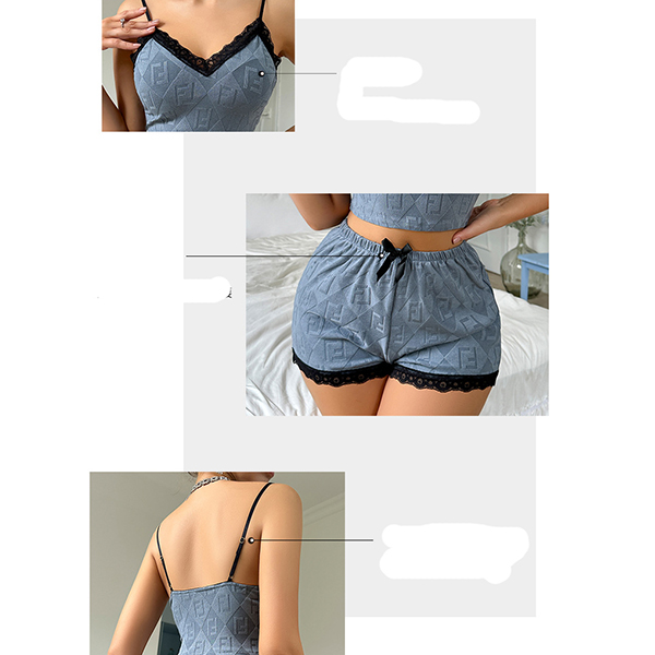 Fashion Lace Spliced Jacquard Two-piece Nightwear Set