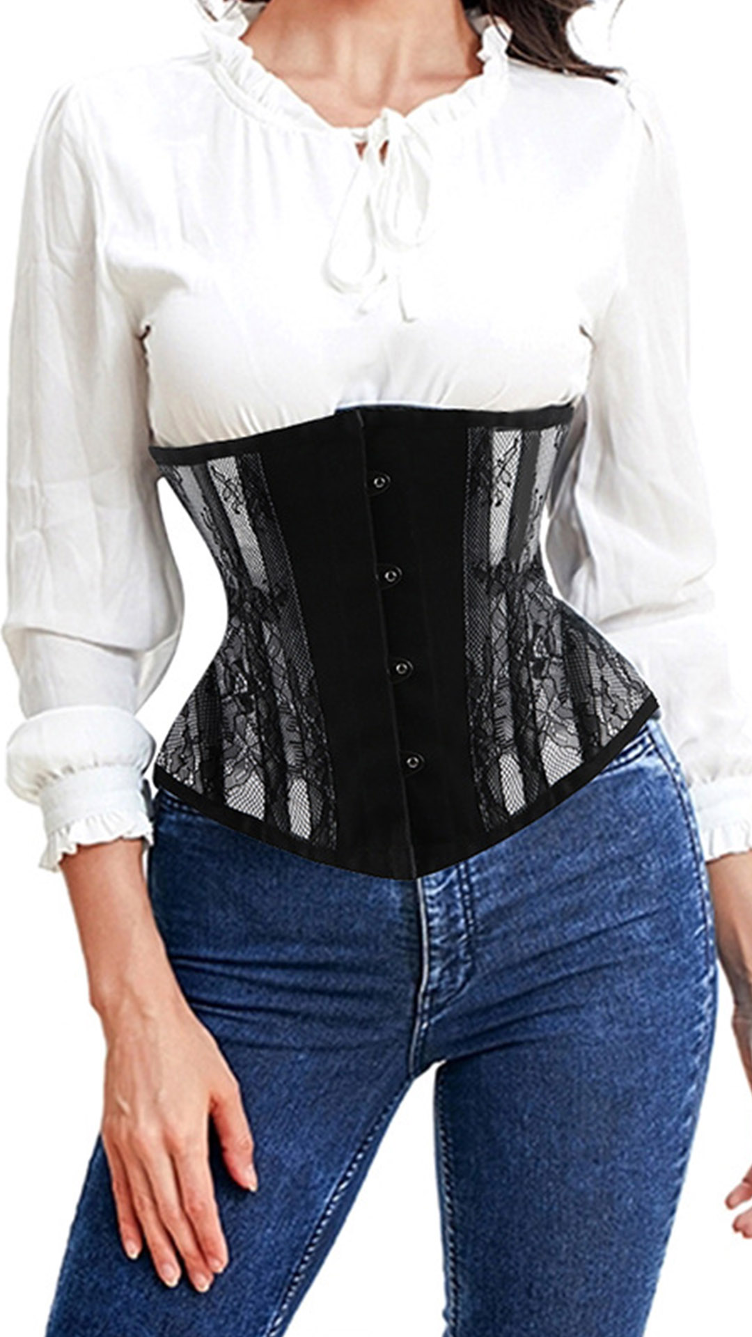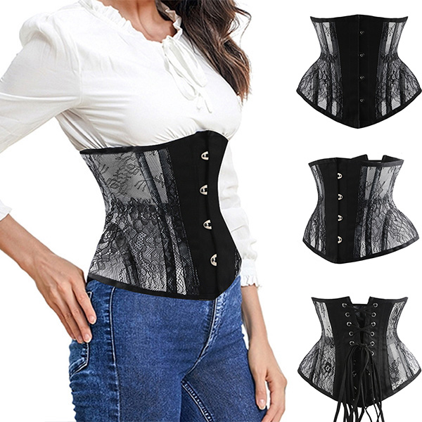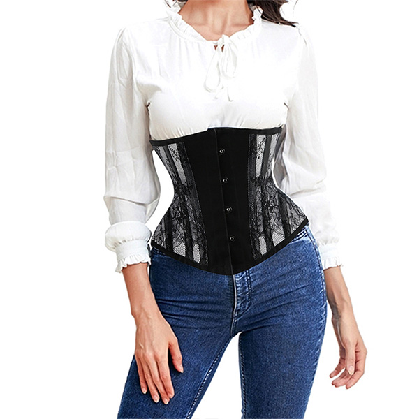 Fashion Lace Spliced Lace-up Buckle Corset Girdle