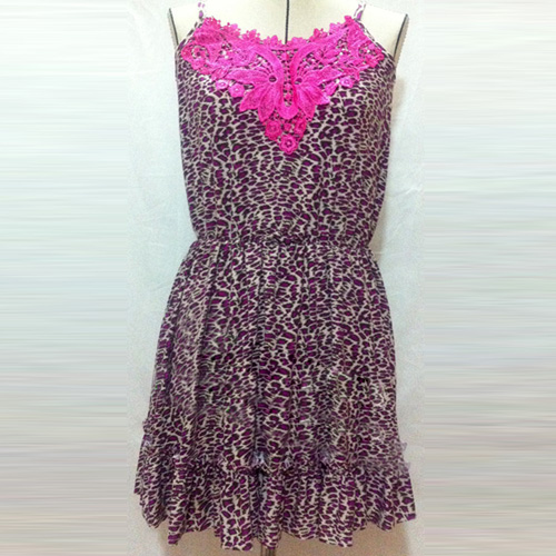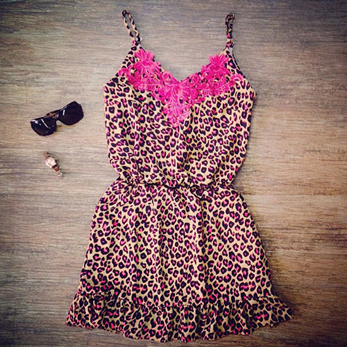 This dress features sling style,with lace spliced design and leopard print pattern,sexy and chic.