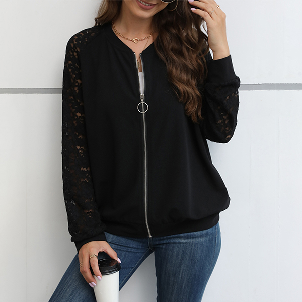 Fashion Lace Spliced Long Sleeve Baseball Jacket