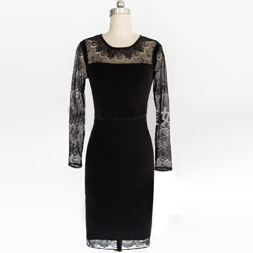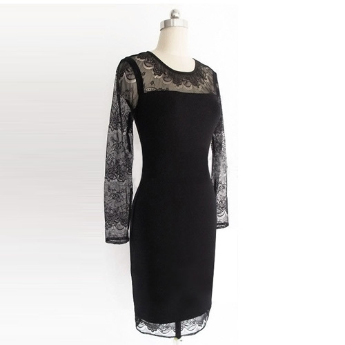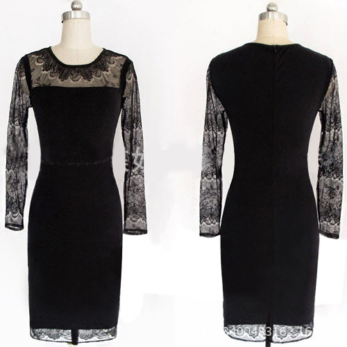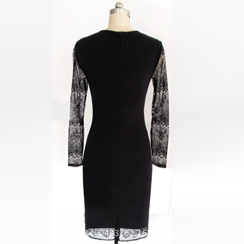 Your elegant temperament and charming style will shine in this dress. It features lace spliced design,sweet and feminine. Fashion round neck,long sleeve and slim fit design,;perfect show your slender figure.