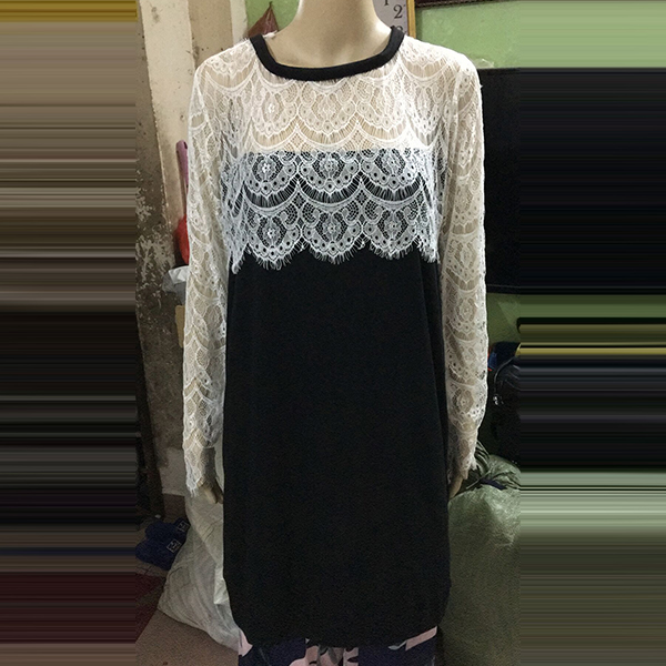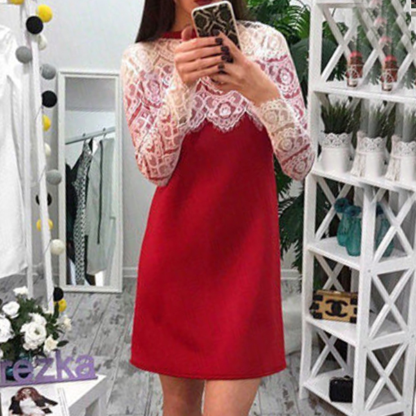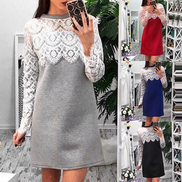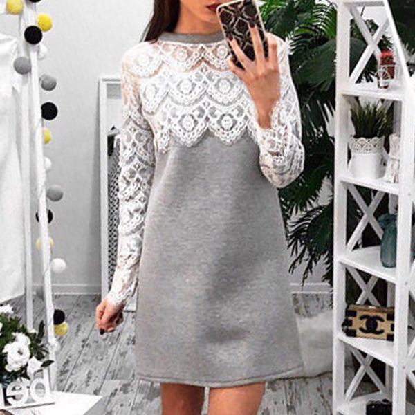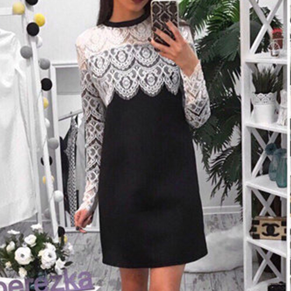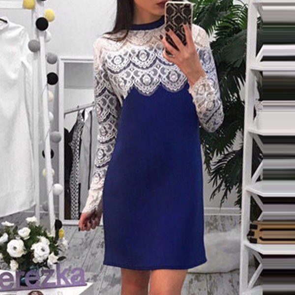 It is styled with long sleeve,round neck and a clean silhouette,elegant and refined,and the lace spliced details add some
