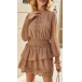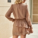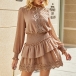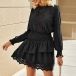 Fashion Lace Spliced Long Sleeve Round Neck Elastic Waist Dress