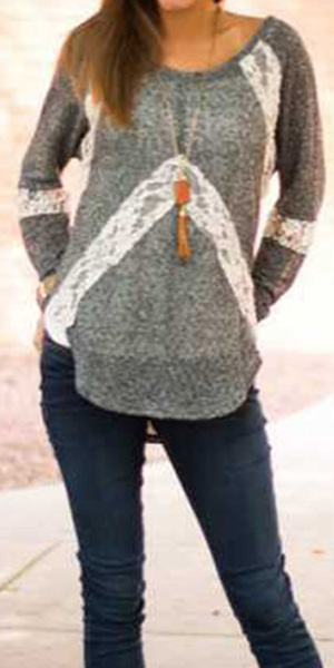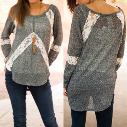 Lace spliced style,feminine and stylish,this t-shirt is deserved to be added to your wardrobe.