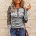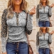 Fashion Lace Spliced Long Sleeve Round Neck Leopard Printed T-shirt