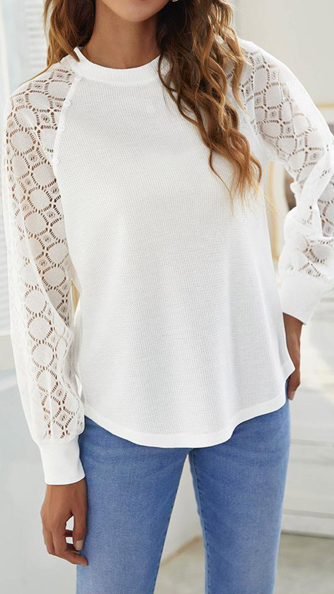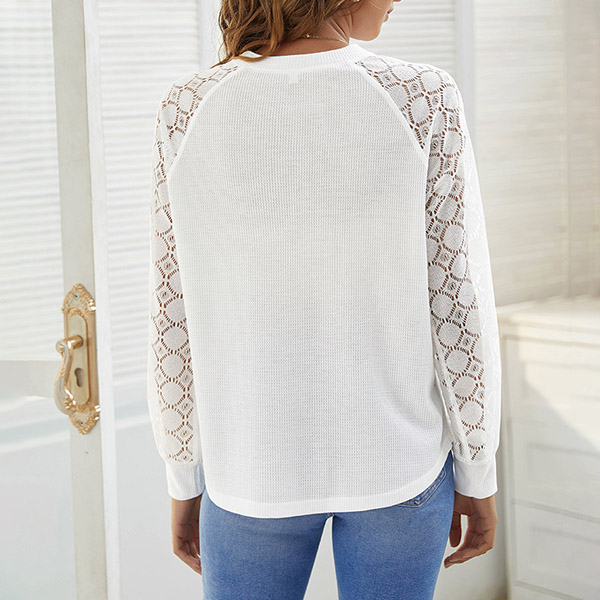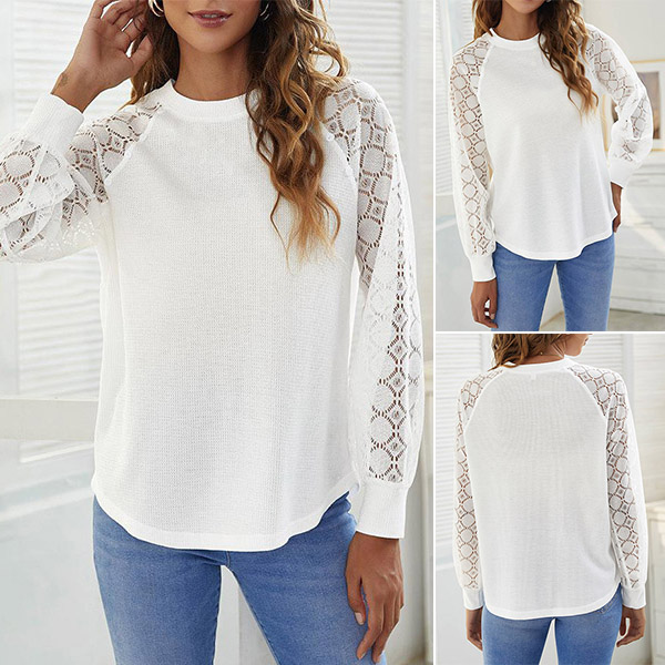 Fashion Lace Spliced Long Sleeve Round Neck Loose T-shirt