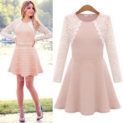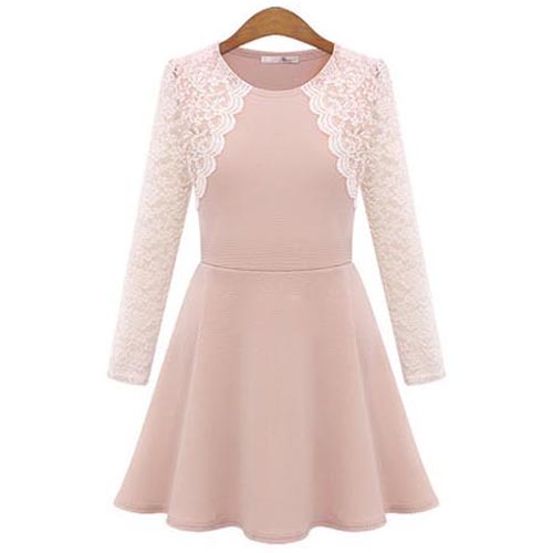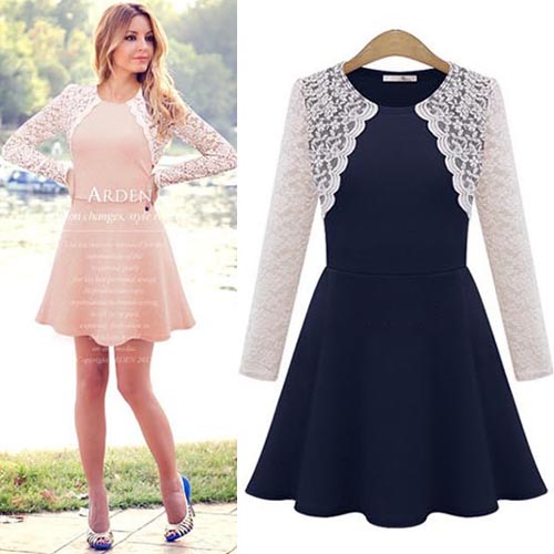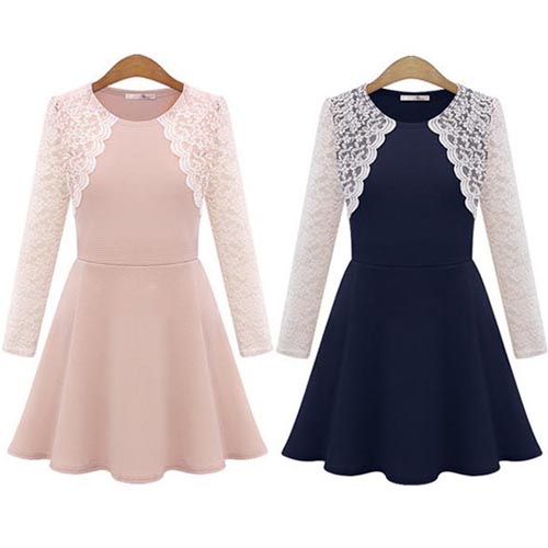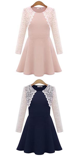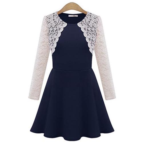 Simple,elegant and stylish,this dress would be your new favourite. Its features lace spliced style,with long