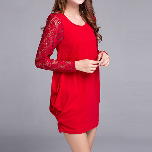fabric,this dress can keep you cozy yet stylish. Lace spliced details make it more feminine. Feel too