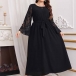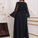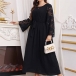 Fashion Lace Spliced Long Sleeve Round Neck Self-tle Plus-size Dress