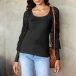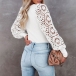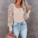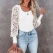 Fashion Lace Spliced Long Sleeve Round Neck Shirt