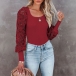 The lace splicing on the sleeves add a touch of elegance, while the round neck and long sleeves keep you comfortable. The shirt is made of a lightweight fabric that is perfect for layering or wearing on its own. Pair this shirt with your favorite jeans or skirt for a stylish look that is sure to turn heads.