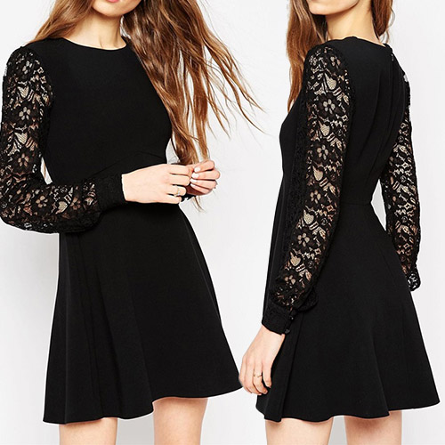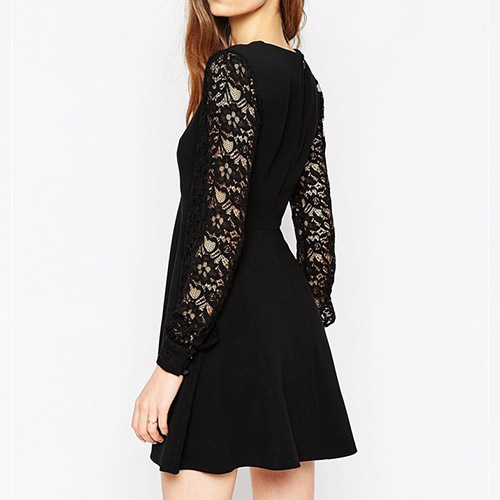 long sleeve,round neck and high waist design,this dress can give you a stylish look. And its lace