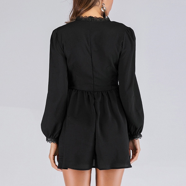 Comes with a classic yet flattering black tone,the lace spliced details at the cuff and collar part will